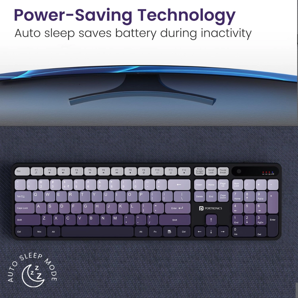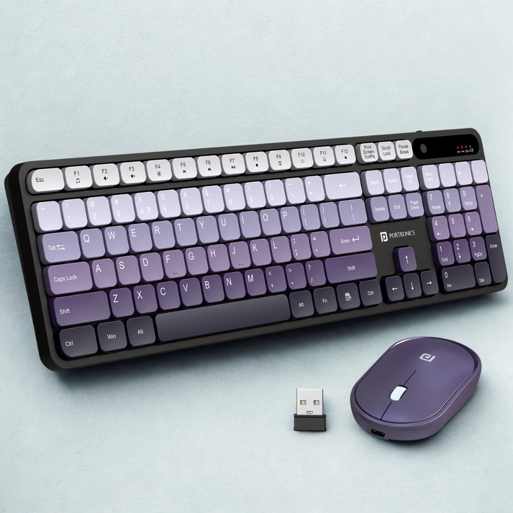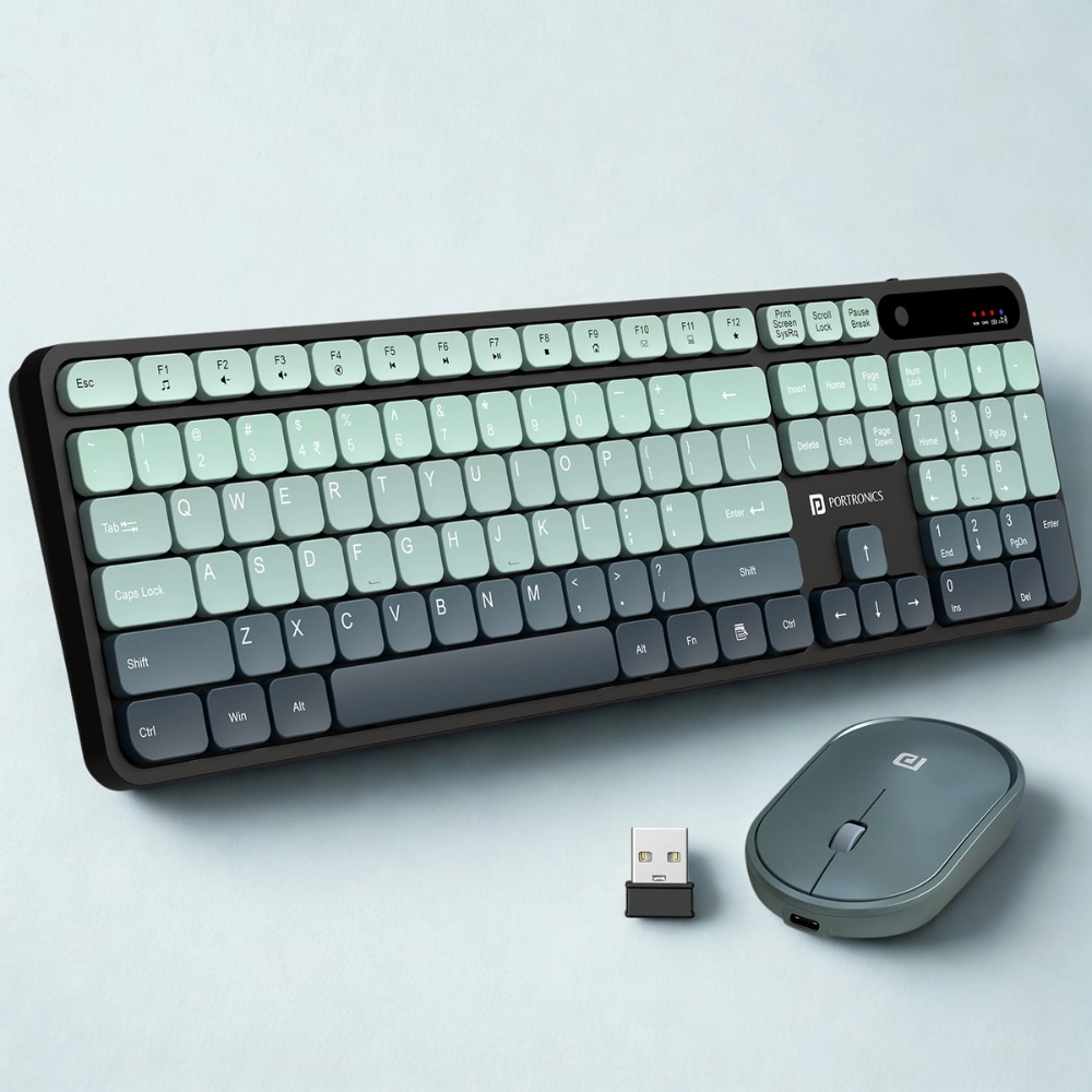 Portronics Key11 Combo – Rechargeable Wireless Keyboard & Mouse Set with Bluetooth 5.3, Type-C Fast Charging, Gradient Keys & Noiseless Typing