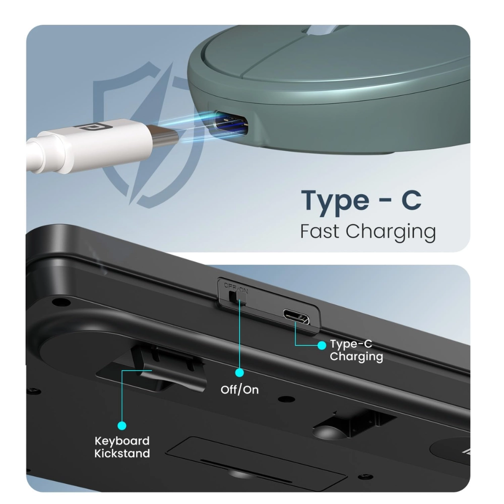 🔋 Rechargeable Keyboard & Mouse: Long-lasting battery with Type-C fast charging.