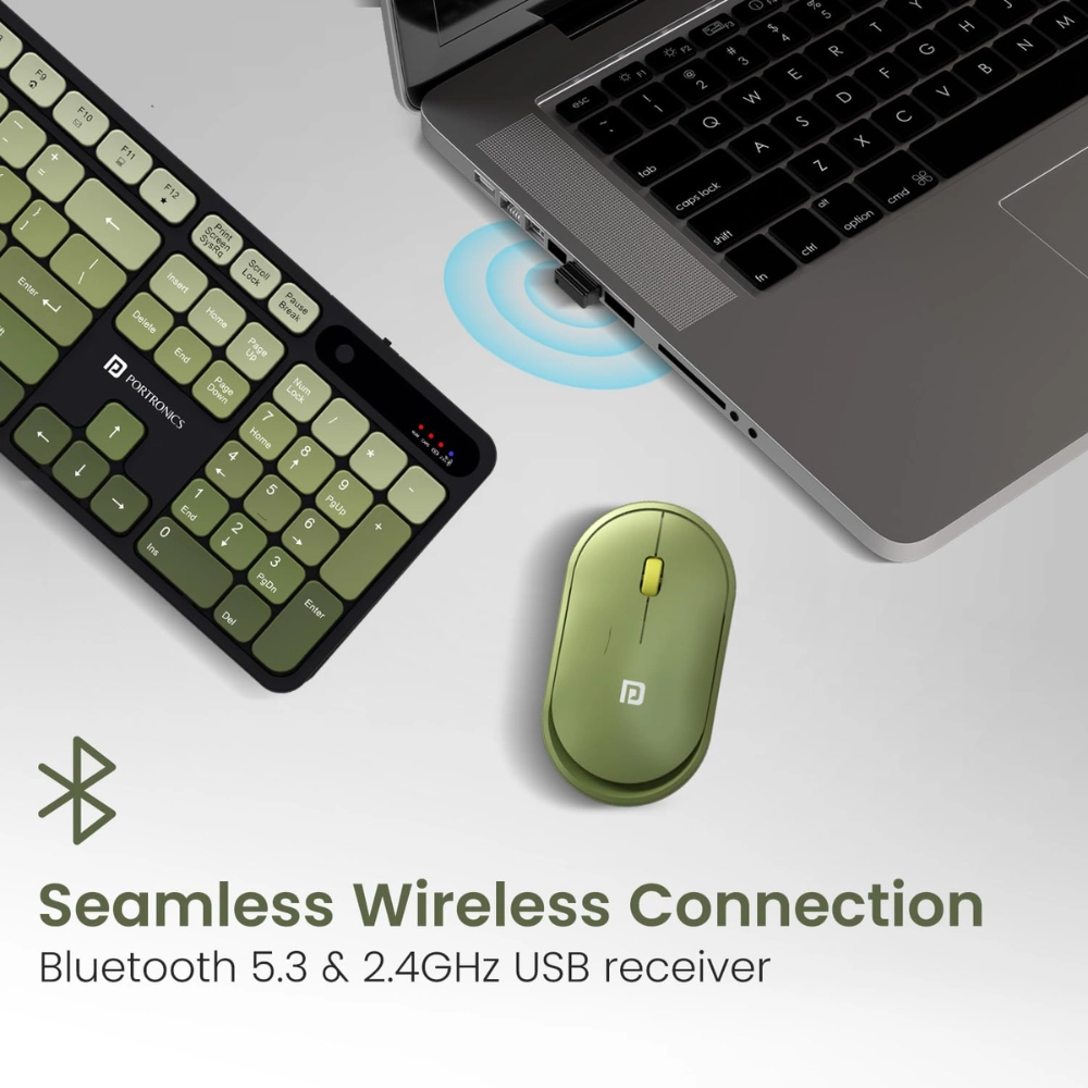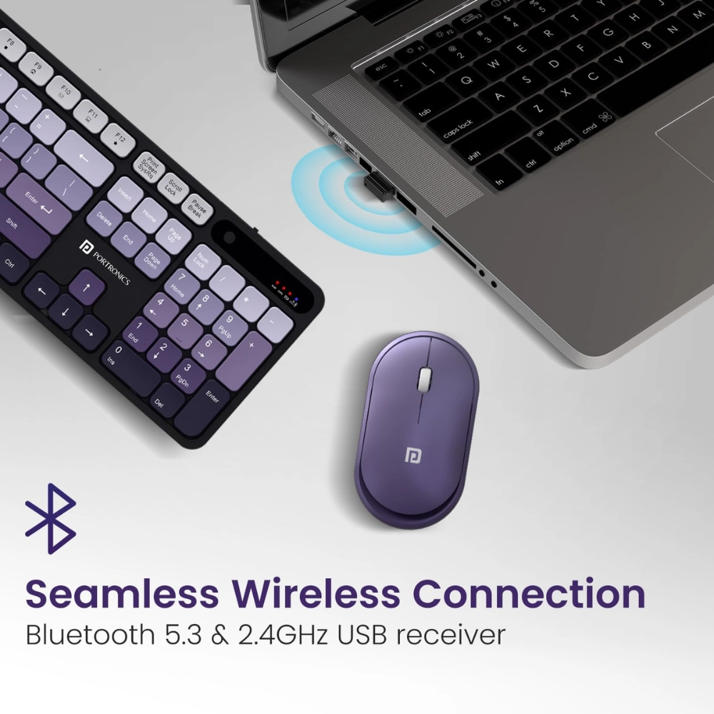 Upgrade your workspace with the Portronics Key11 Combo, a stylish and high-performance wireless keyboard and mouse set designed for smooth multitasking and maximum comfort. Featuring dual connectivity (Bluetooth 5.3 + 2.4 GHz), the Key11 Combo lets you switch effortlessly between devices — perfect for your PC, laptop, tablet, or smart TV.