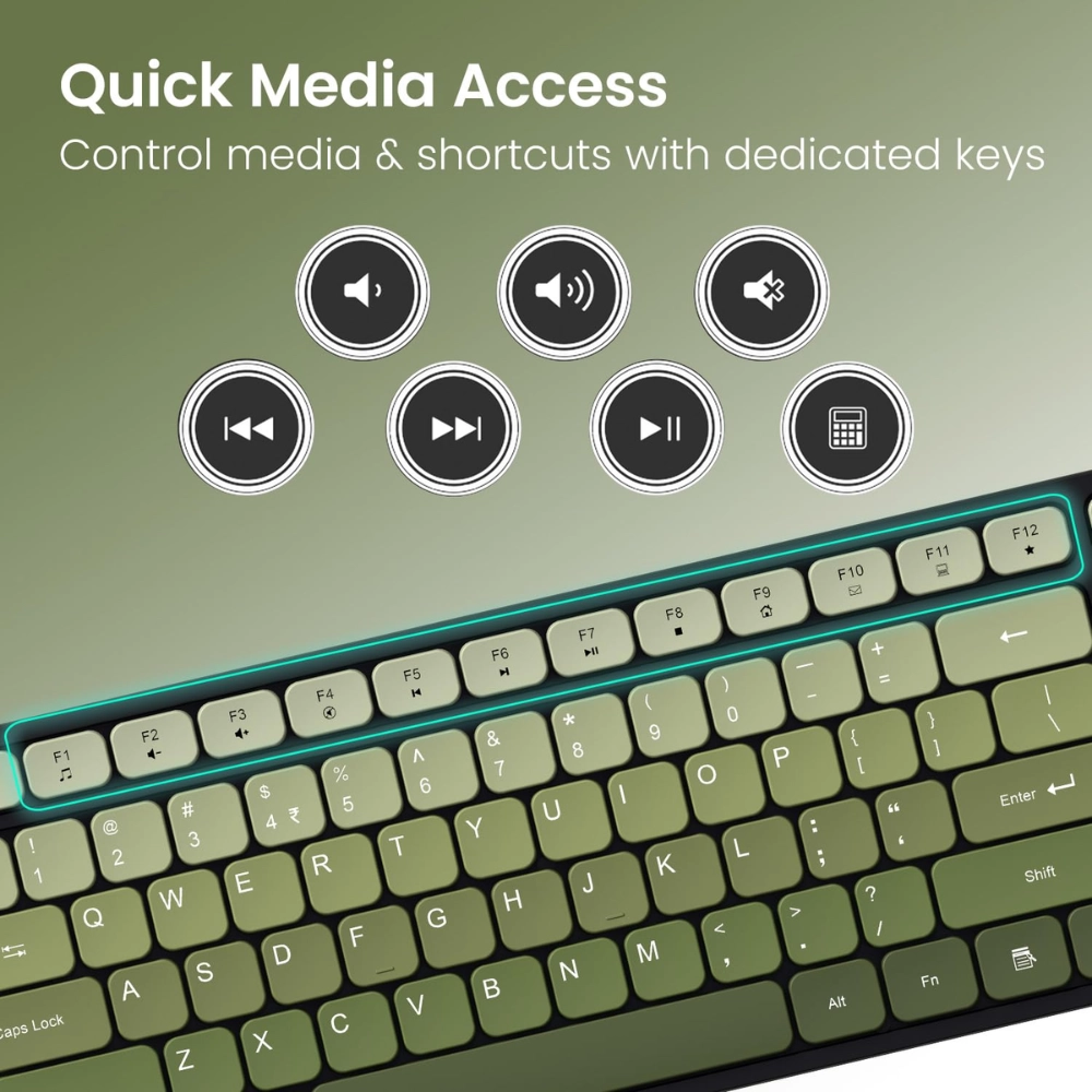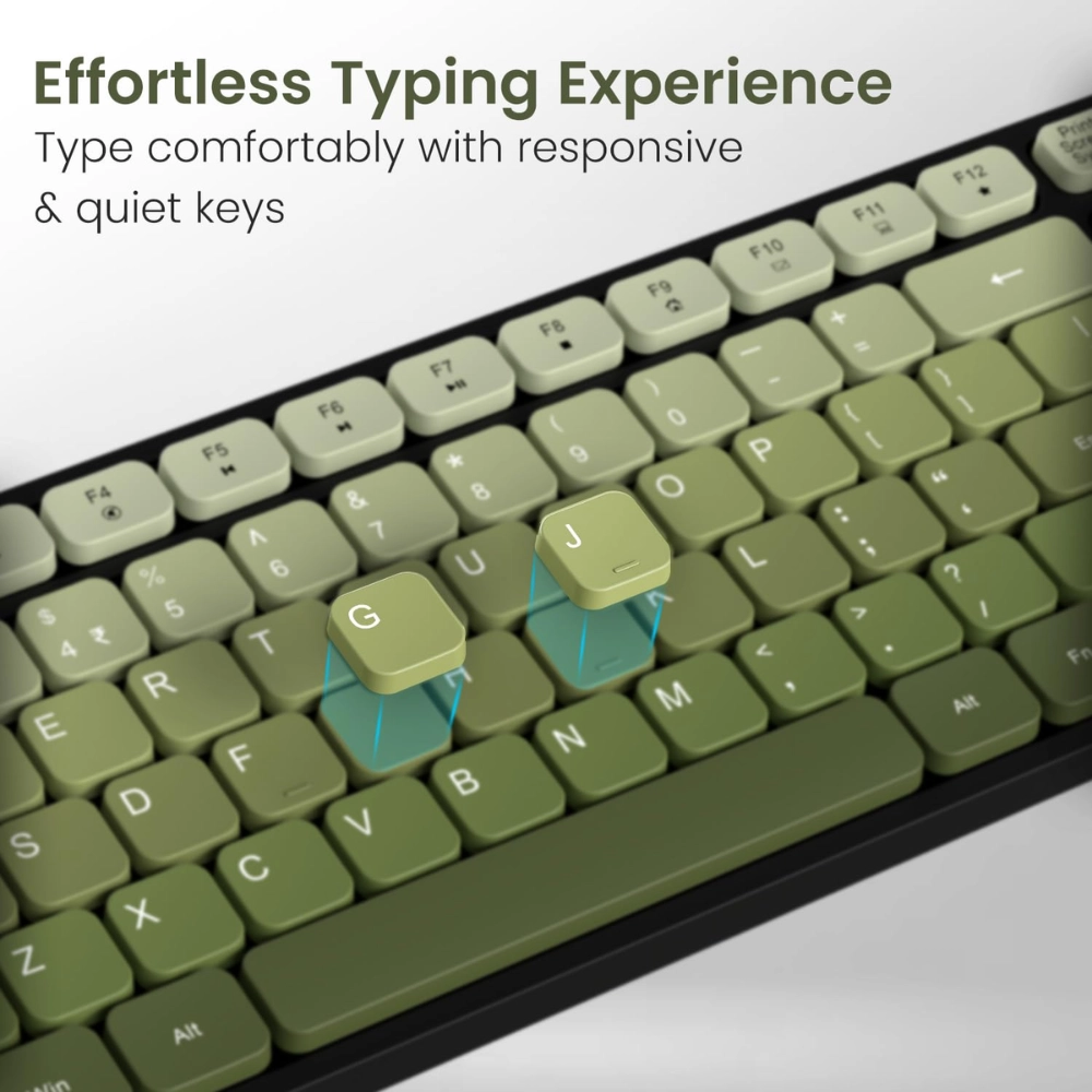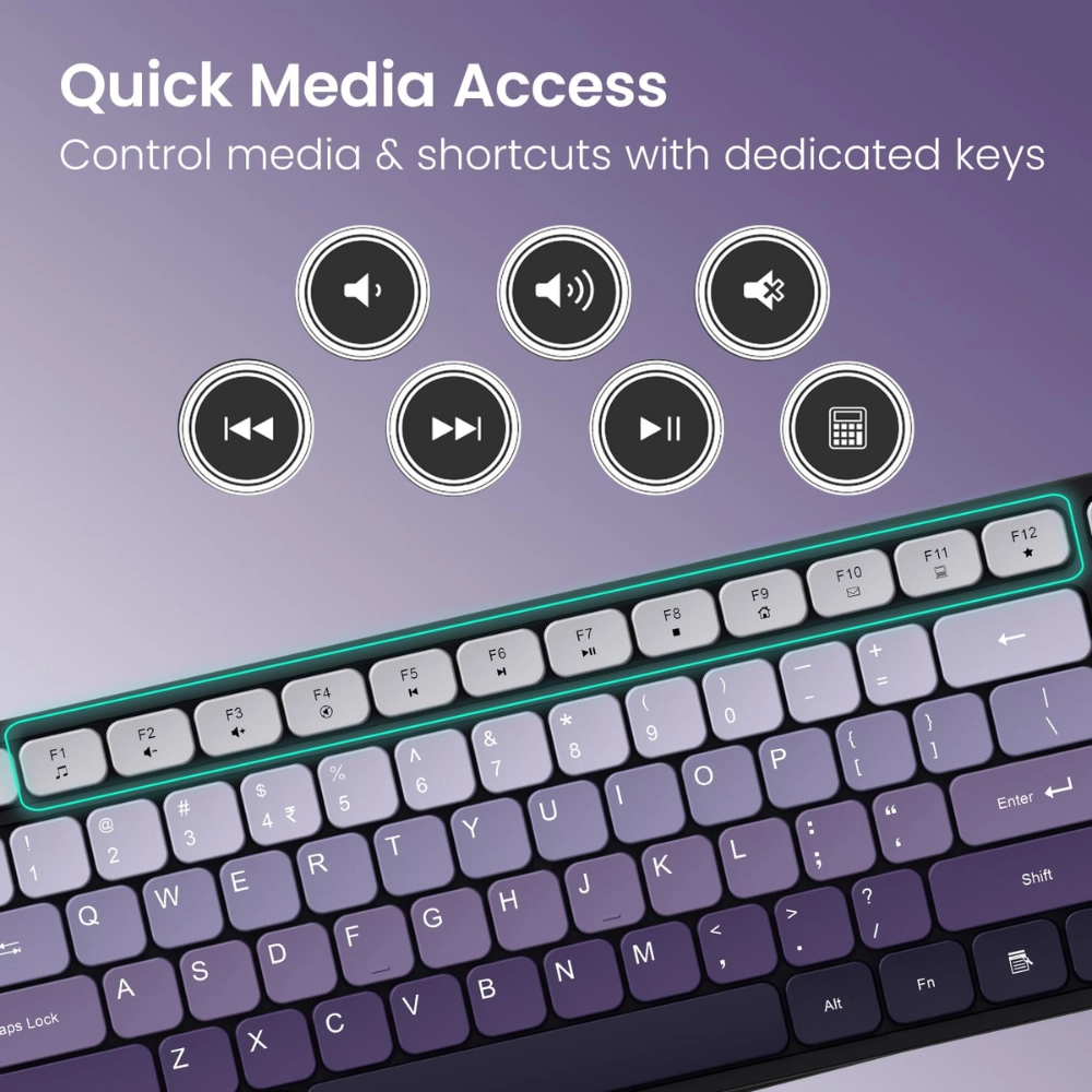 The rechargeable keyboard comes with gradient-colored keys that add a modern touch to your desk while offering noiseless, soft-press typing for long hours of productivity. Paired with a high-precision wireless mouse, it ensures smooth tracking, instant response, and seamless navigation across screens.