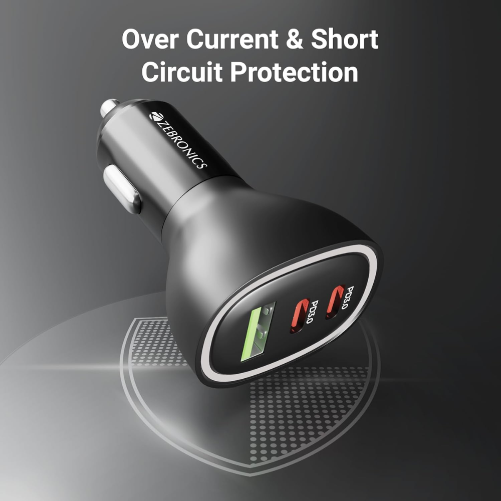 Power up on the go with the Zebronics 78W Multi-Port Car Charger, designed for fast, safe, and efficient charging for all your smart devices. Engineered with cutting-edge PPS technology, this compact charger automatically adjusts power output to provide optimized fast charging for smartphones, iPhones, tablets, earbuds, and more.